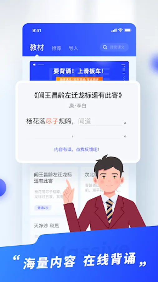 Online learning assistant for recitation, covering all the recitation content of Chinese and English textbooks for elementary, junior and senior high schools;