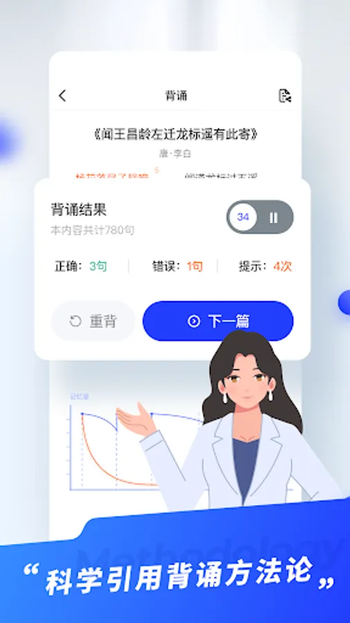 Highly integrated recitation methodology, hollowed out memory, "integrated joint" recitation method, Ebbinghaus forgetting curve, and children's accompanying reading process, truly escort everyone's recitation, improve efficiency and quality;