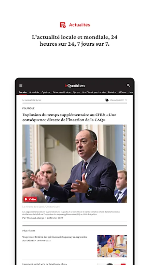 The Daily app, your best source of information in the greater Saguenay-Lac-Saint-Jean region.