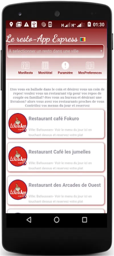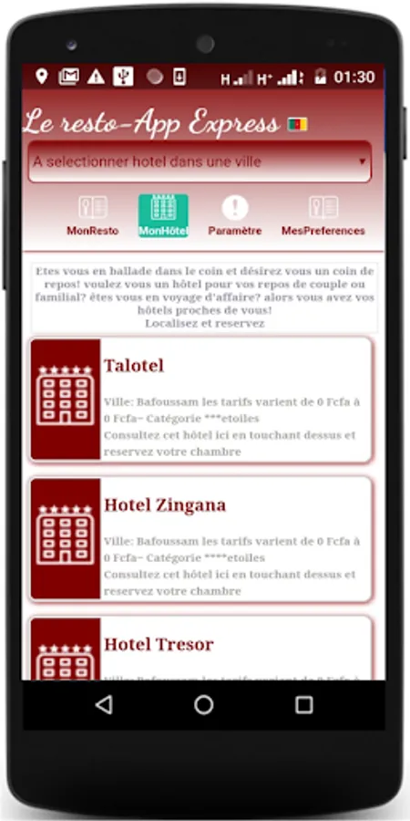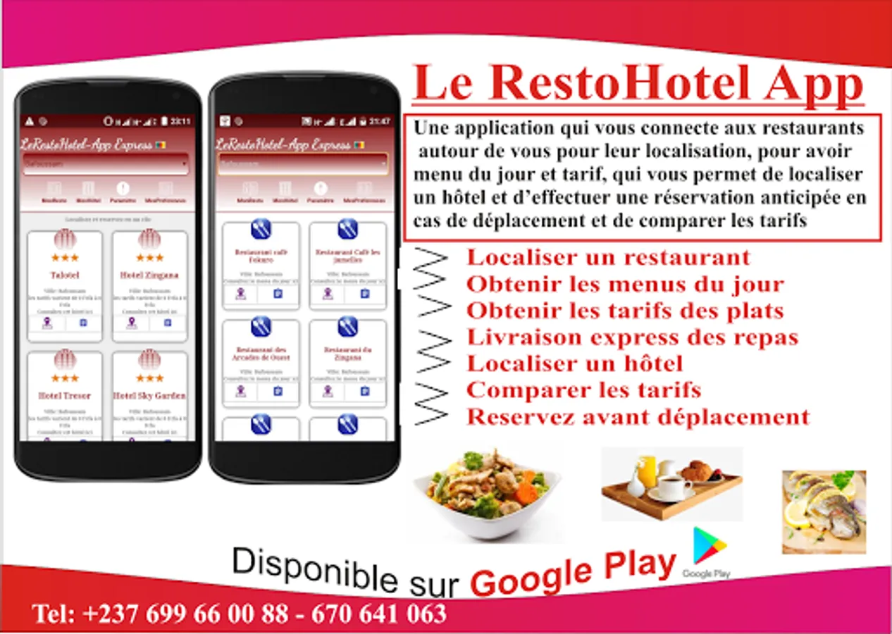 Need a better restaurant near you! carefree, this application will allow you to find a restaurant near you and allow you to order your dishes and also have it delivered to the office, consult the menu of the day and price in order to make a choice of restaurant. When traveling, find and book your hotel in your destination city