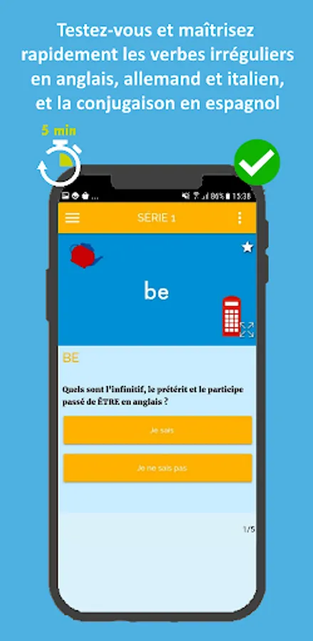 Put this application in "favorite" to train by targeting your weak points. Make your own selection of verbs that cause you problems to use them later.