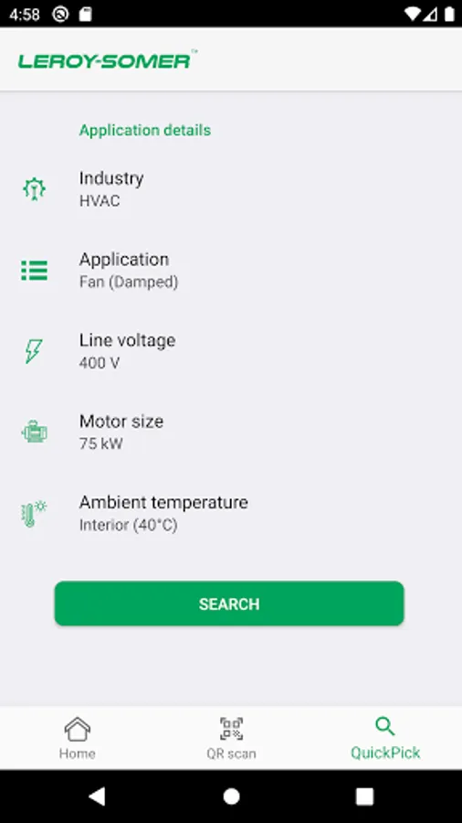 Need support for your Leroy-Somer soft start product? The Leroy-Somer Digistart app is pre-populated with contact details for your local Leroy-Somer office. If you have contact details for your local installer or for a personal support contact, you can also add these details to the app for safekeeping and quick sharing of QR data or quote requests.