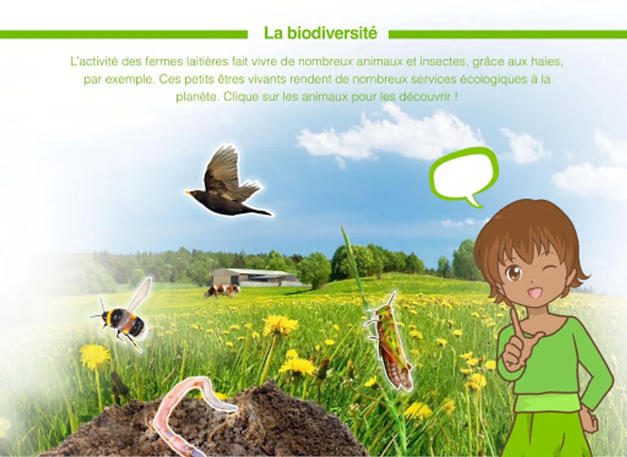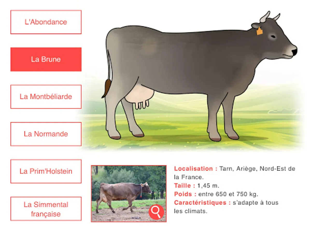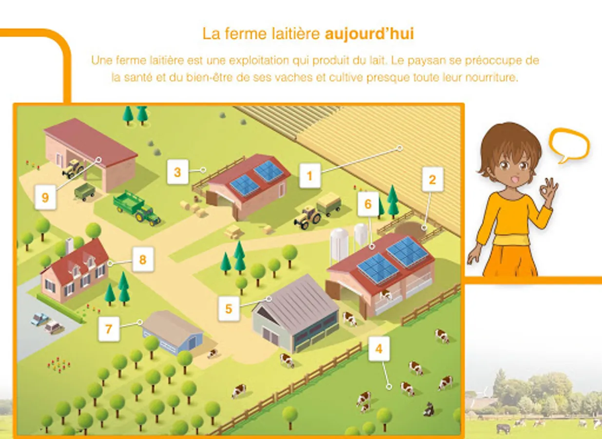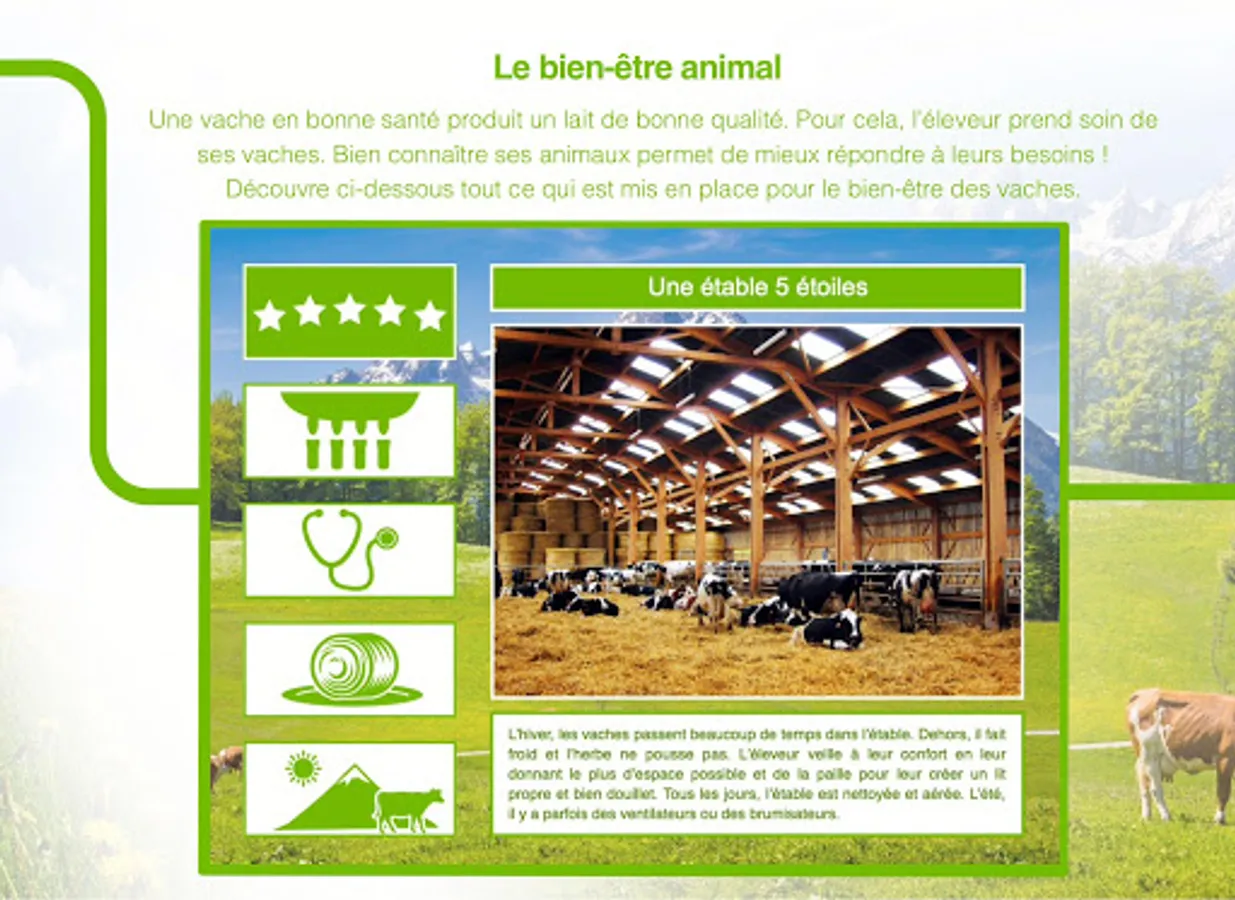 An incredibly friendly, dynamic and colorful universe that asks about cows: What eat a cow? Who looks after them? And provides students with answers. Assisted by Amber, an illustrated character of their age, the dairy farm will have no secrets for them. free digital tablet app.