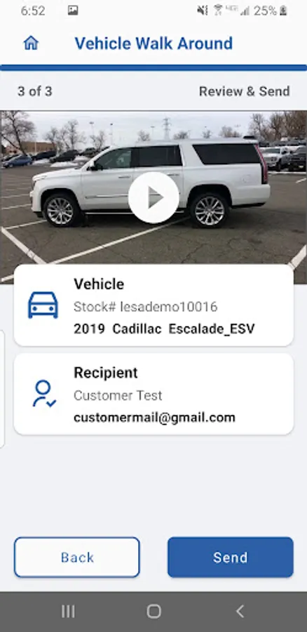 If the dealer is already a customer of LESA's video inventory program, the sales rep can select from an existing video and record a personalized picture-in-picture message to email or text the video to the customer.