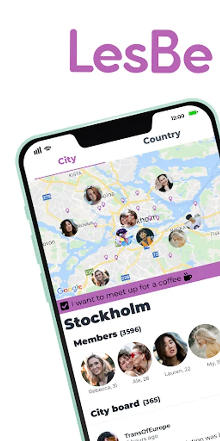- CITY GAY MAP. Quickly get an overview of members, groups, posts and events in your city. Pick an activity and show yourself on the map to meet women near you. Easily change country and city to get your perfect travel guide for everything lesbian.