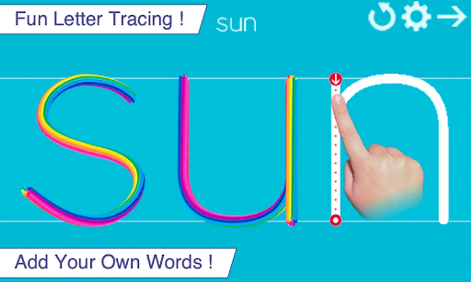 • Once the writing is complete, kids can play with fun games which animate word’s letters
