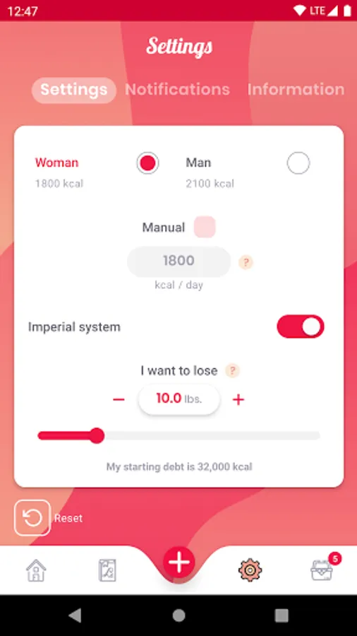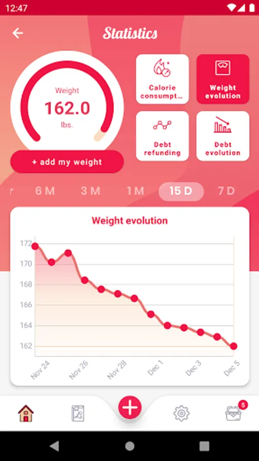 - If you eat less than your estimated budget, you’ll lose weight: a chart indicates, in real time, how many grams you have lost.