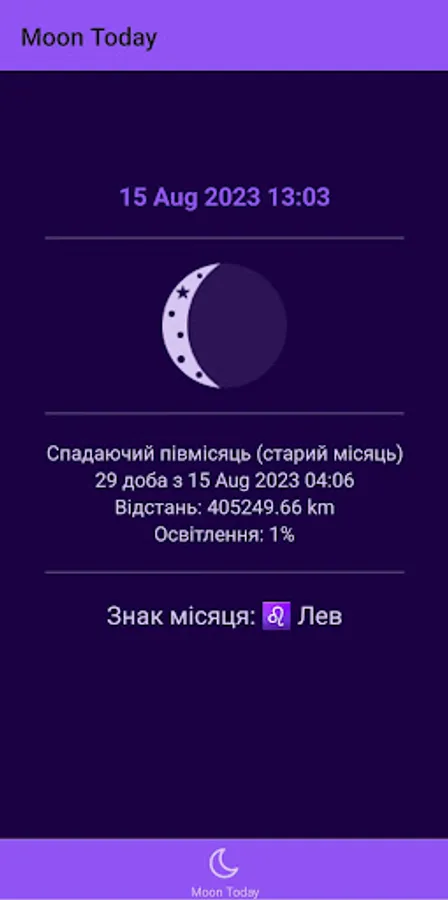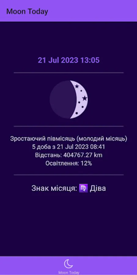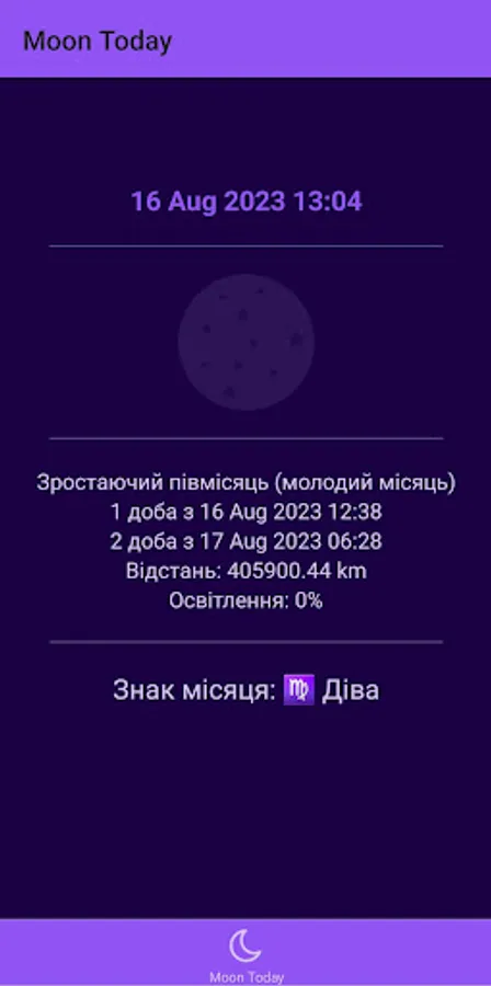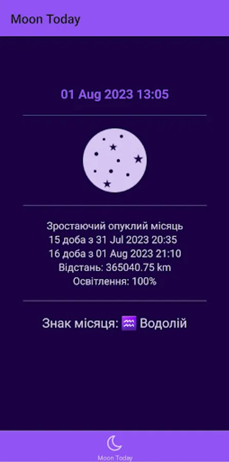 Moon Phase is an exciting and useful app designed to track the phases of the moon. It provides users with the opportunity to always be aware of the current phase of the moon. This application will become an indispensable assistant for everyone who is interested in astronomy and astrology.