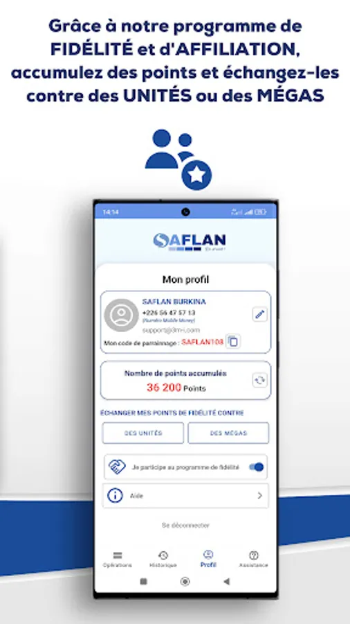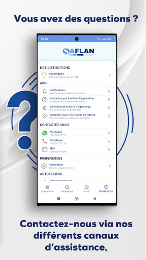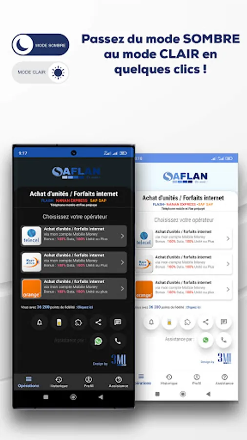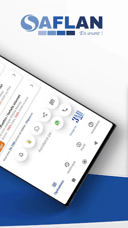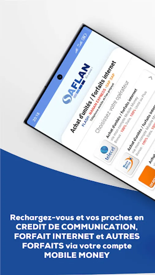 SAFLAN free application edited and distributed by the company 3MI which allows any holder of a Mobile Money account (Orange Money, etc.) to perform the following operations with ease and in real time: