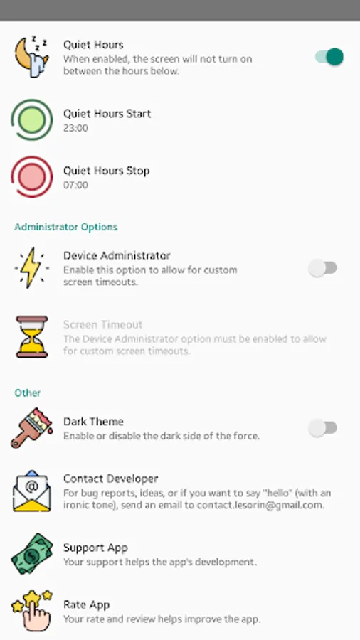 -Select quiet hours during which the screen will not turn on for any notification