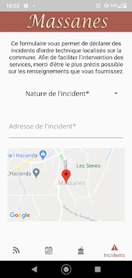 A pothole? Public lighting is faulty? Use the incident report and report the problem to City Hall in an instant thanks to geolocation and adding a photo taken on the spot or from your library.