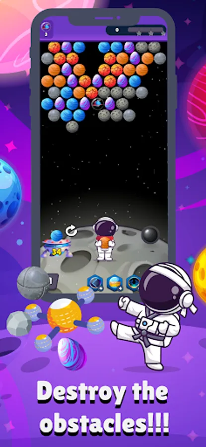 Combine 3 or more planets to blast the planets. Create your strategy, choose the right angle, and enjoy the explosions. Each level presents an arcade galaxy filled with new challenges, obstacles, and nova special powers.