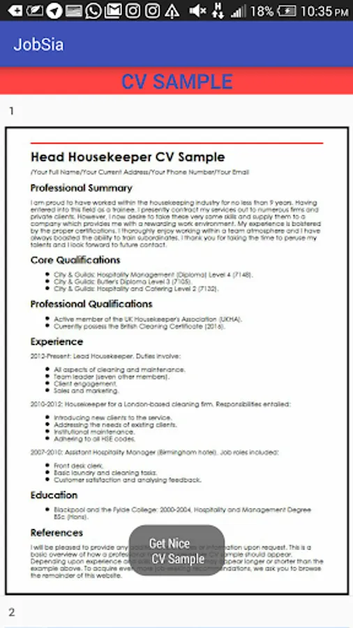 CV samples: whit this app you will also get access to list of nice and beautiful