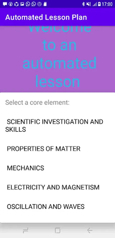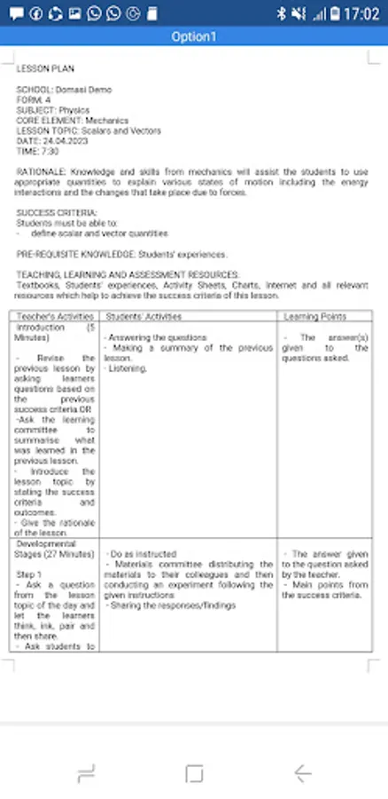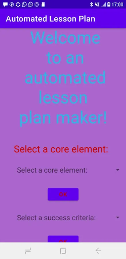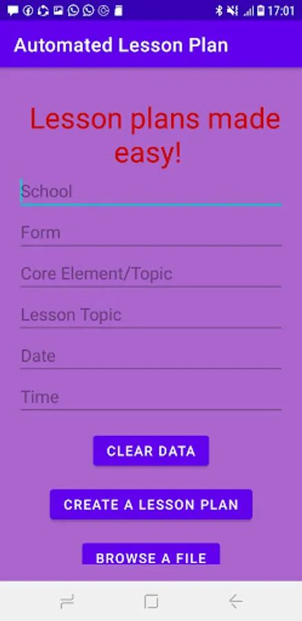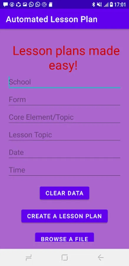 This is an automated lesson plan for teachers. This app aims at creating lesson plans automatically. All you need is simply to select the required success criteria and then fill in the preamble section. When all data is completed then a full lesson plan is generated.