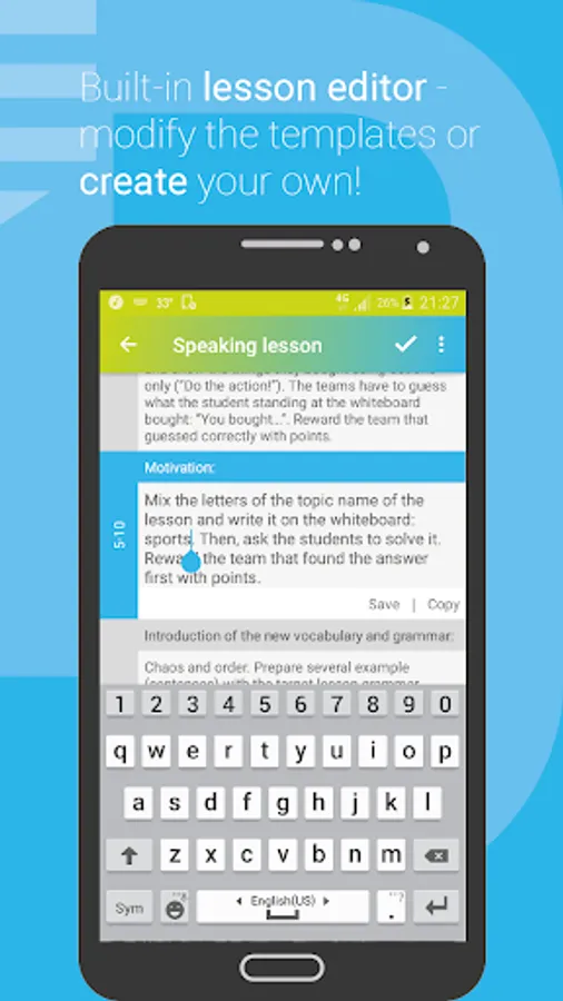 Generate ready-to-use English lesson plan templates with just one click and edit them in the Lesson Editor.