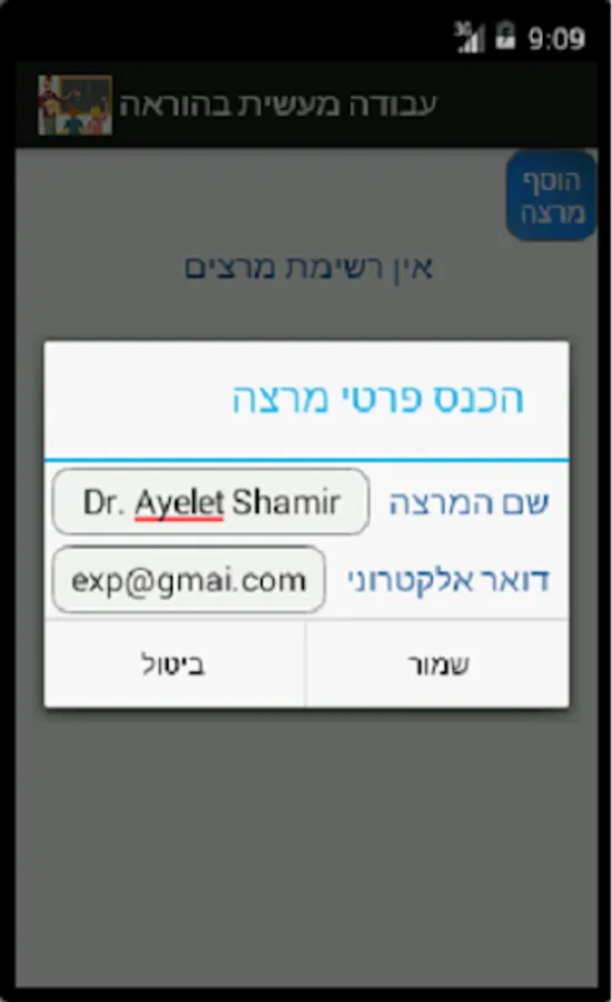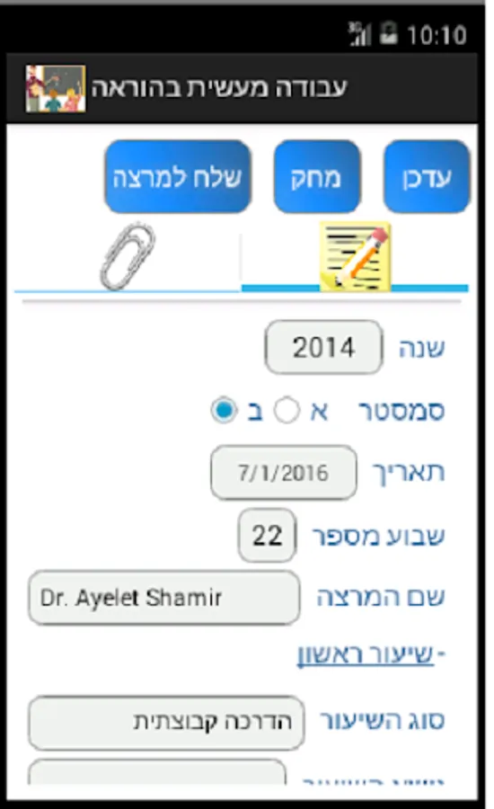 בעזרת אפליקציה זאת ניתן להזין את נתוני השיעורים לשמור אותם, לצרף תמונות