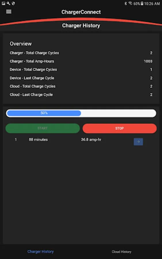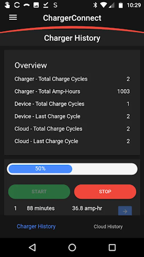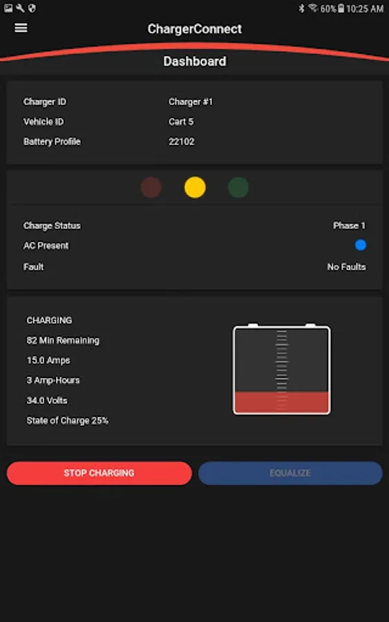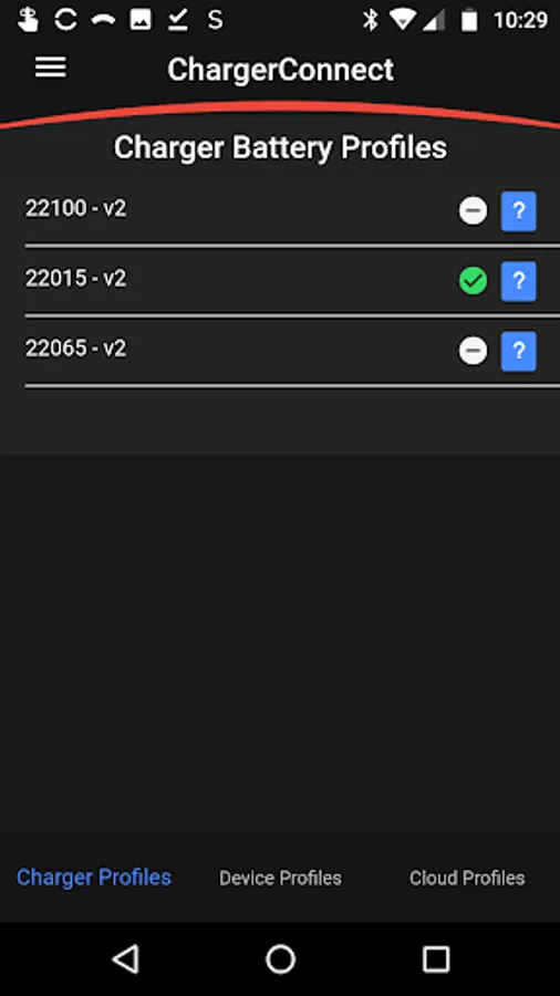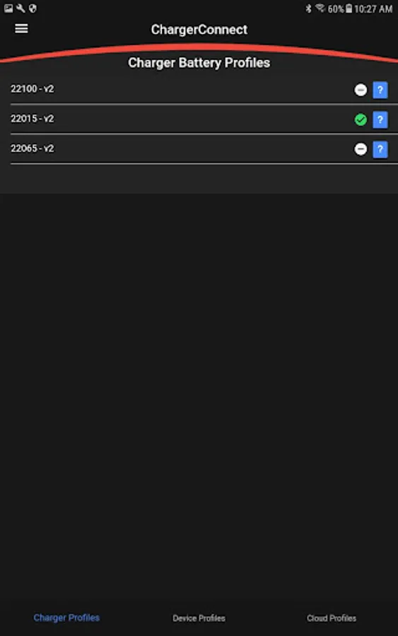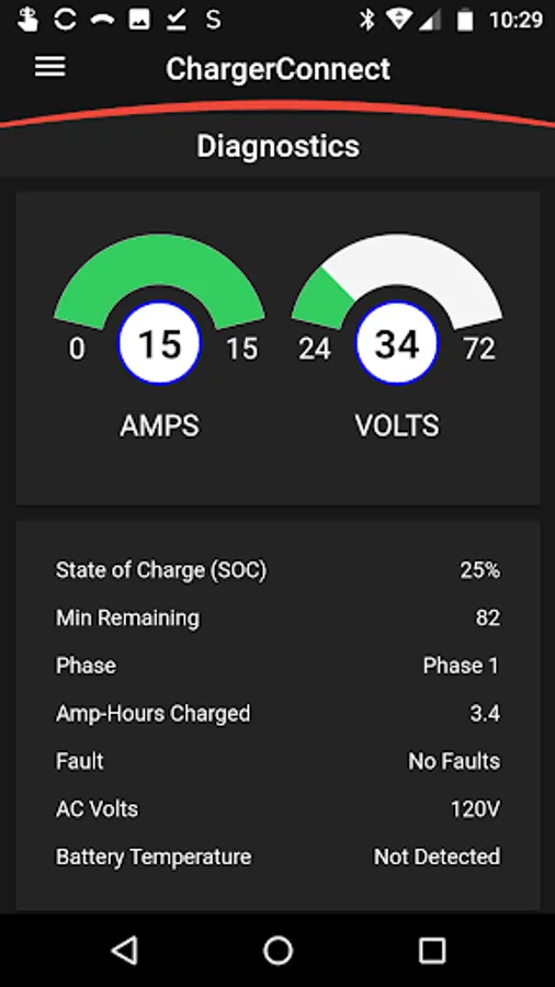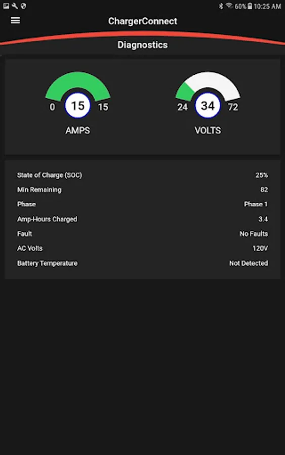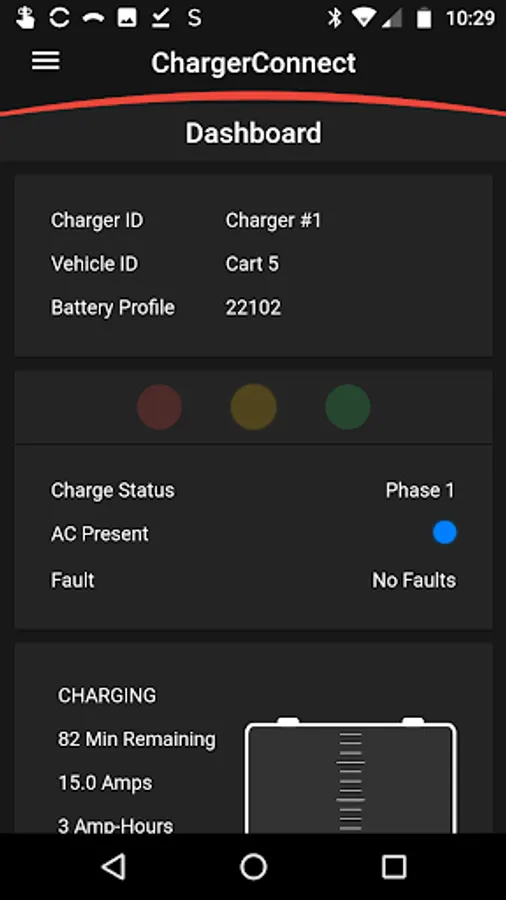 The Charger Connect application interfaces wirelessly with Summit II battery chargers over Bluetooth Smart.