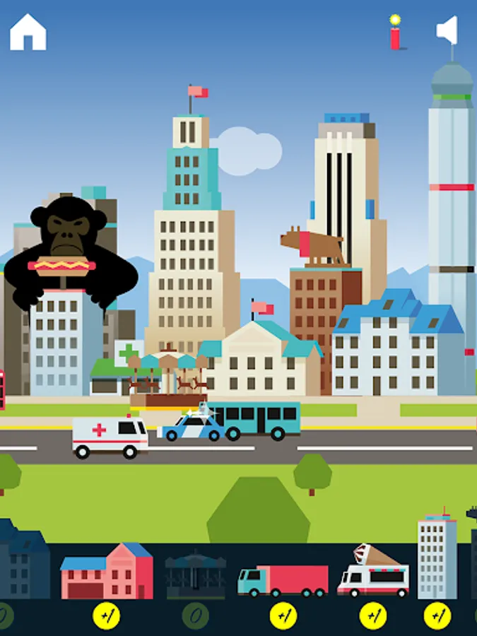 The app is built like a progressive game with fun City items to unlock in each level: cars, ferris wheels, ambulances, houses, buildings. Children practice counting and making numbers, the app rewards them by unlocking items so they can play in their own unique City.