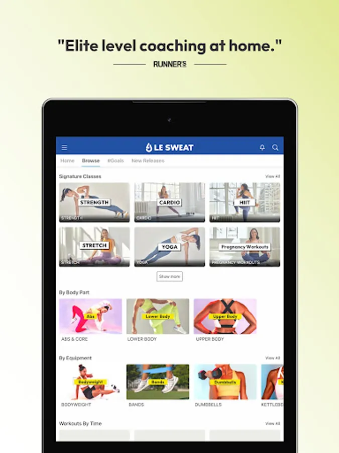 Inside the app, you'll also find videos organized by equipment. From bands to dumbbells to bodyweight only, Le Sweat has you covered with every type of workout that will leave you feeling healthy and accomplished.