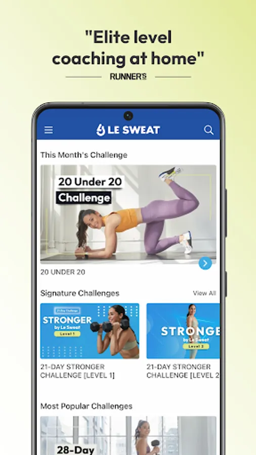 Select workout classes by modality or participate in one of the Le Sweat programs and challenges. Videos are sorted by body part (abs, booty, arms) and range from 5 to 45 minutes. Le Sweat challenges can help jumpstart your fitness routine, prepare you for an upcoming event, help destress, or motivate you for your favorite season.