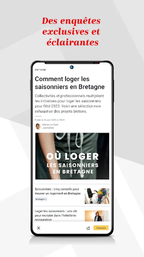 With this new application, Le Télégramme makes your daily life easier by offering you relevant, tailor-made and informed information in Brittany and elsewhere.