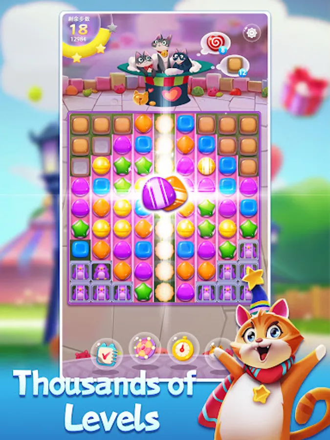 Candy Cat is a simple snack of a game, meant for players who just want to play and have fun, without being distracted by bells and whistles. Unlike other match 3 games, this game is all about YOU.