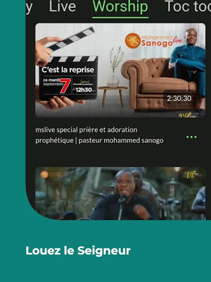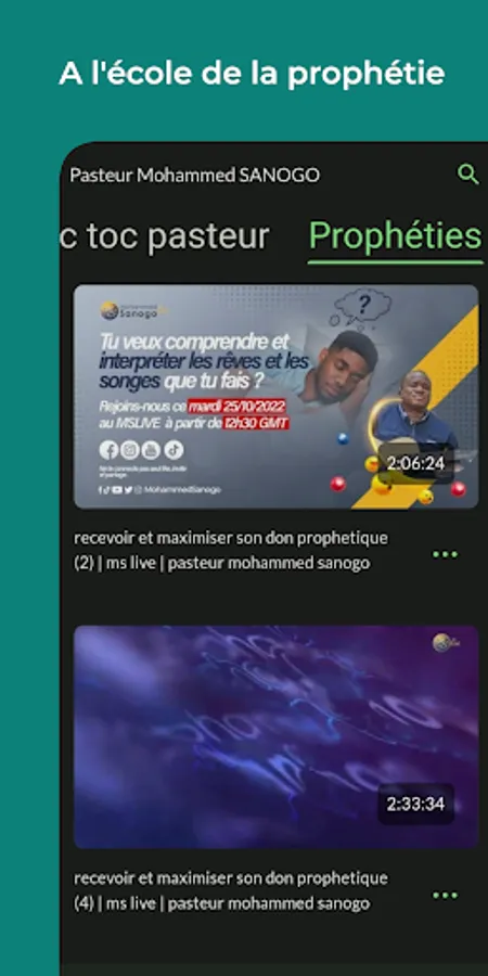 This application connects you to the channel of Pastor Mohammed SANOGO to allow you to follow all the sermons online and replay them in replay.