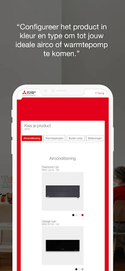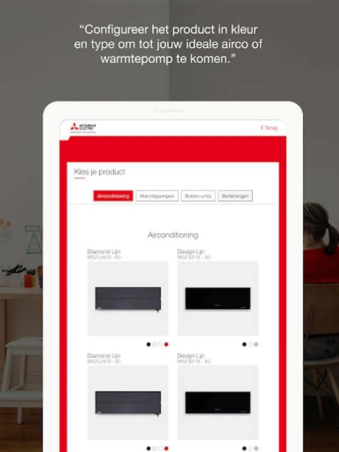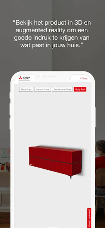 The Alklima HOME app configures your ideal air conditioning or heat pump. You can then view this machine in full size in your own environment through augmented reality. This gives a realistic picture of what the end result will look like. After placing the machine, it is possible to adjust the color and type to what fits in the room in which you live or work. When the total picture is correct, the result can be sent or ordered from an Alklima Dealer.