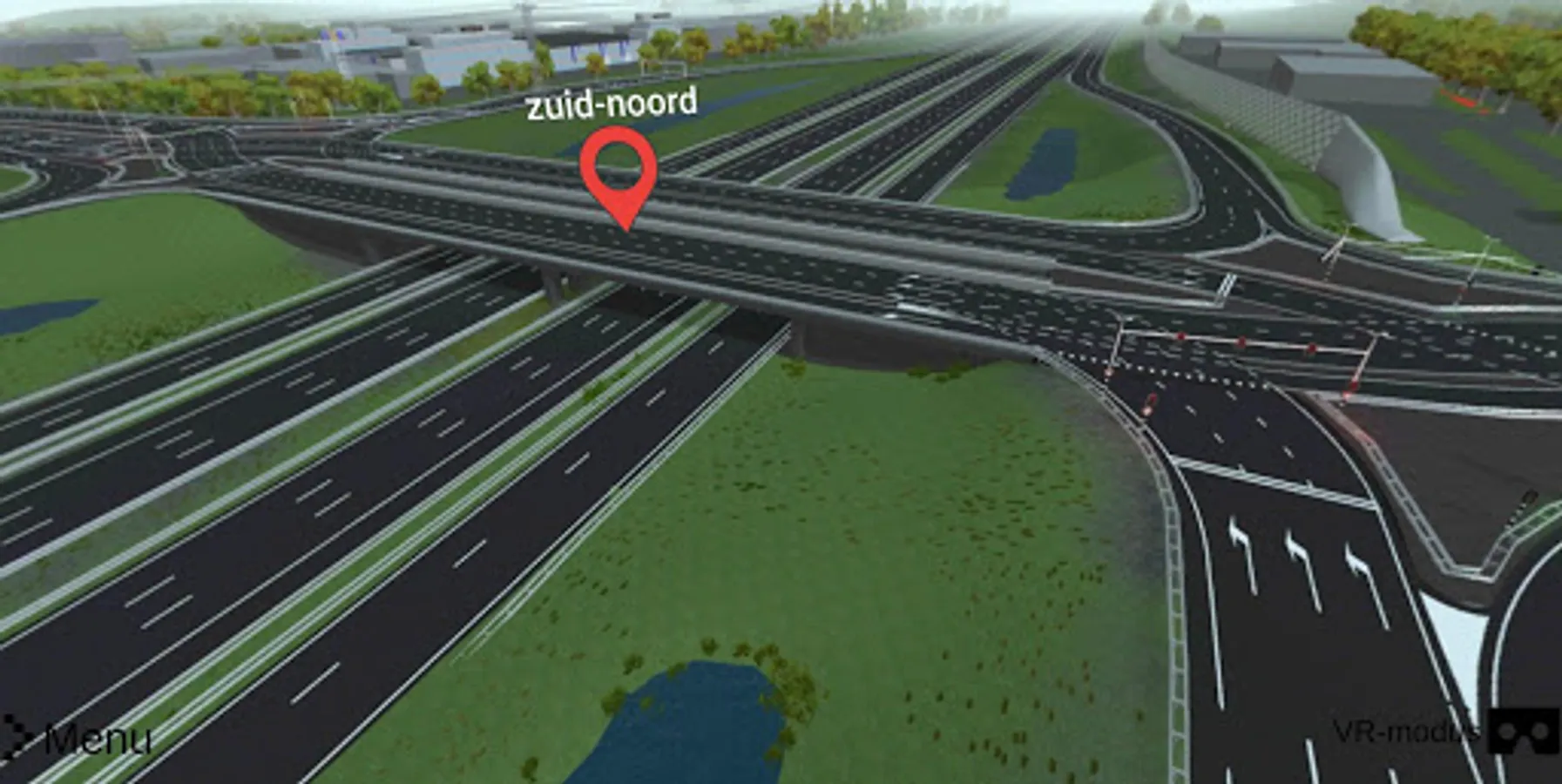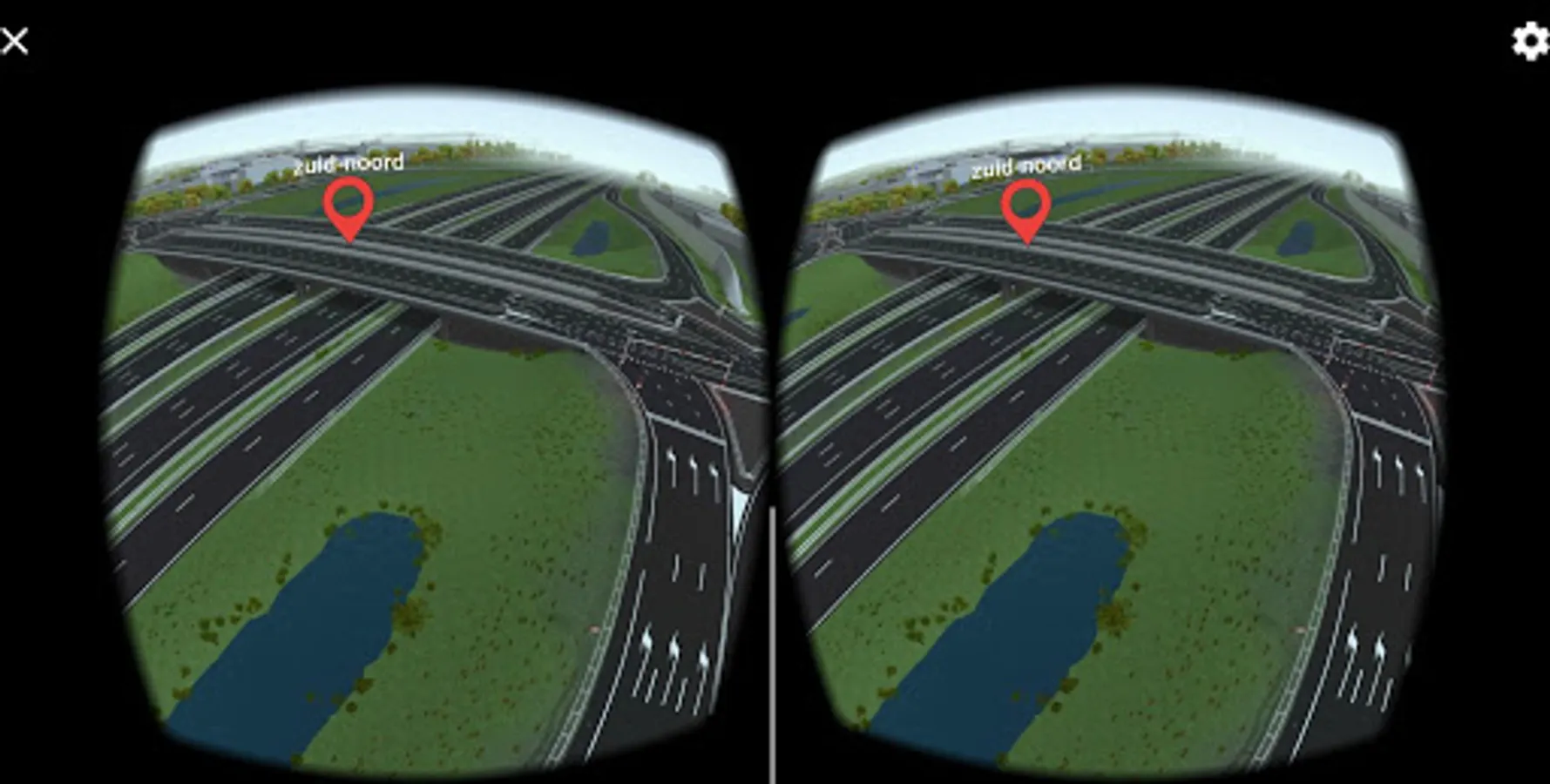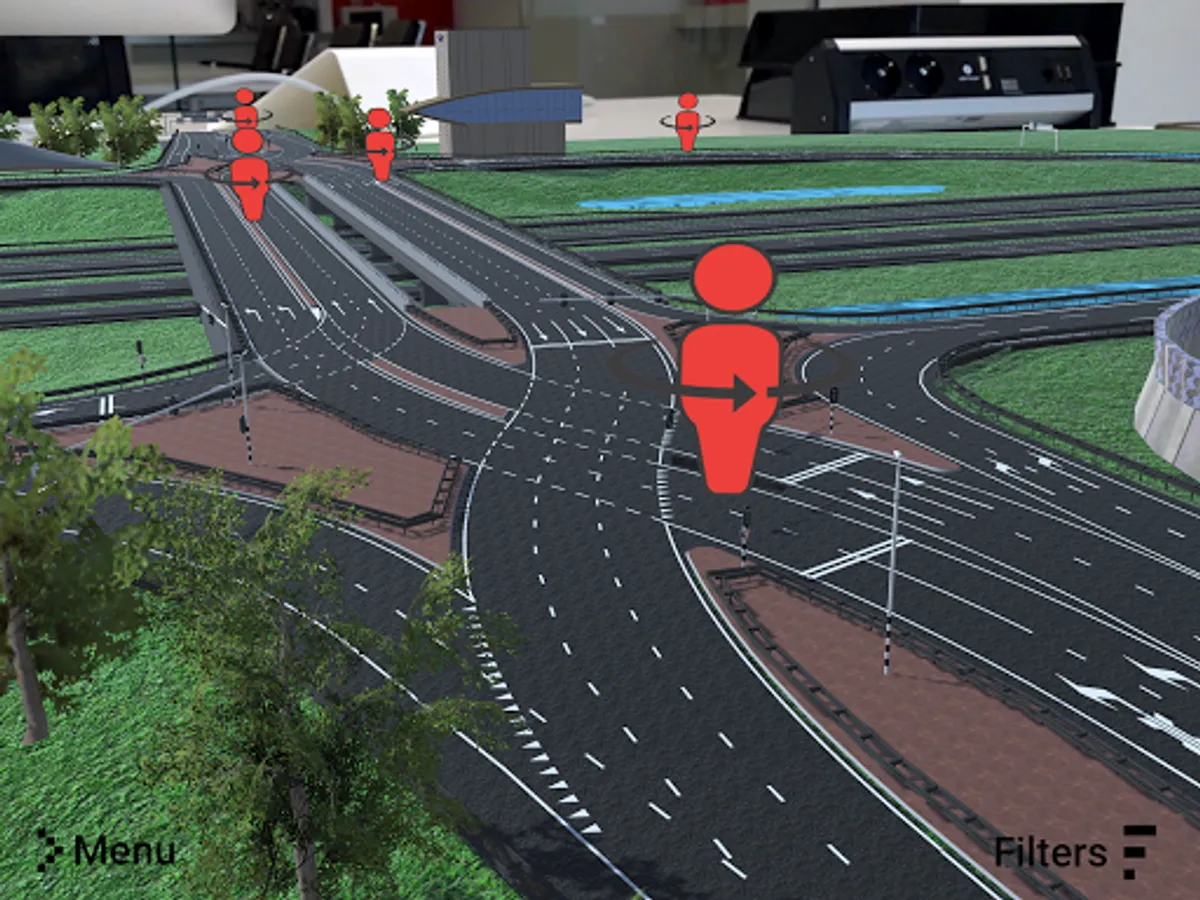 From the AR you can visualize the traffic flows, view extra information, zoom in and switch to 360 degrees Virtual Reality viewpoints. For the Virtual Reality view you can swipe in the full screen to watch round or use optional VR glasses.