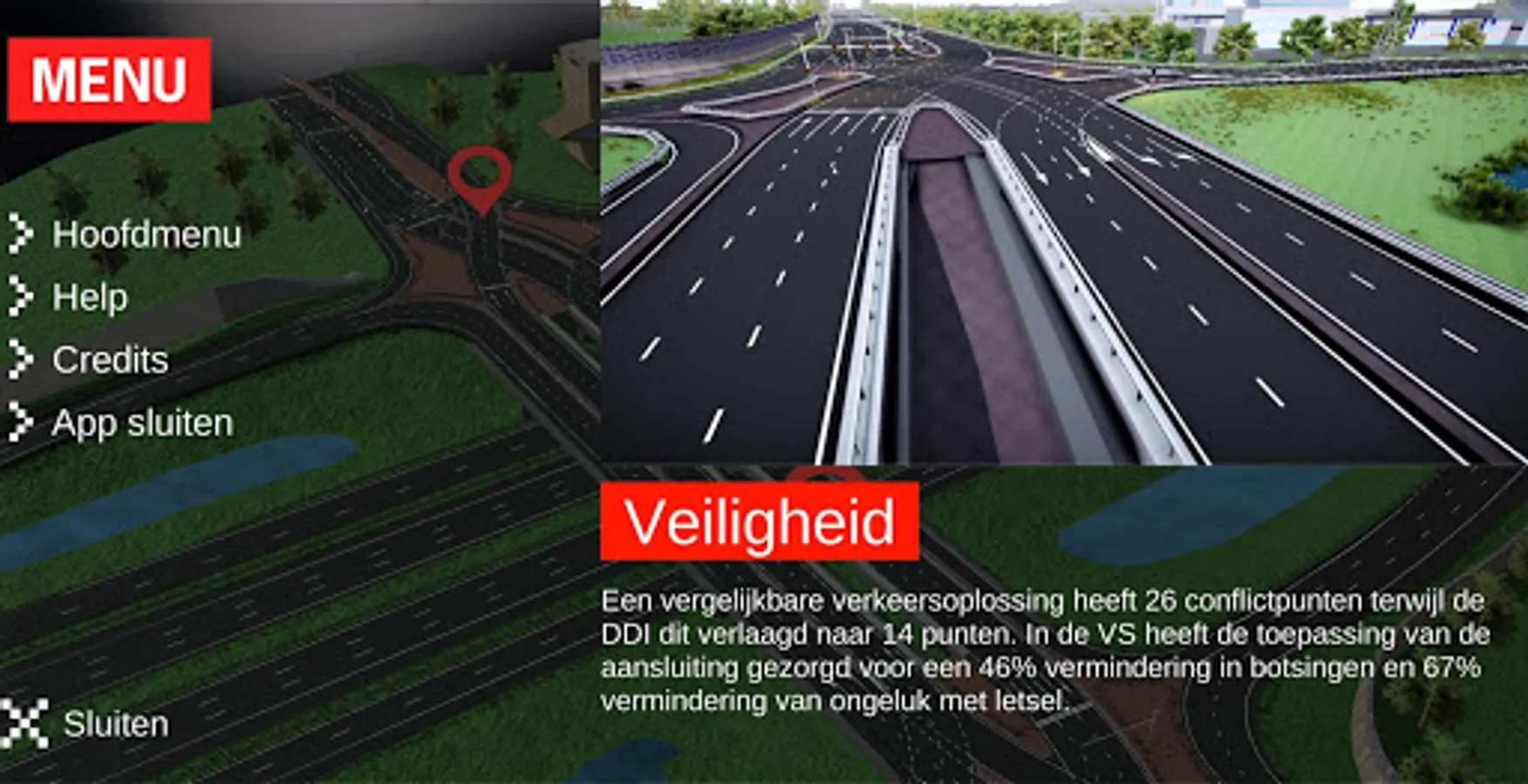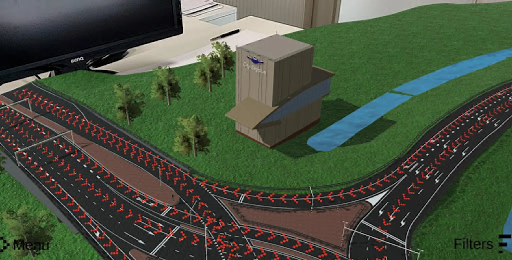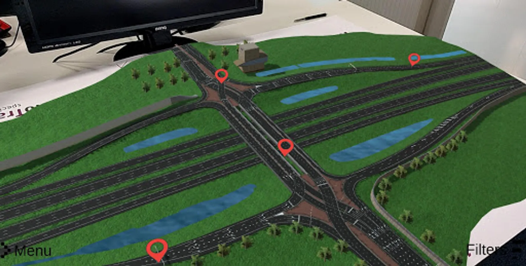 From the AR you can visualize the traffic flows, view extra information, zoom in and switch to 360 degrees Virtual Reality viewpoints. For the Virtual Reality view you can swipe in the full screen to watch round or use optional VR glasses.