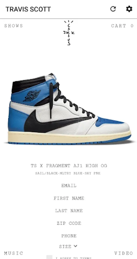 - Alert for drop new item on Travis Scott's shop
