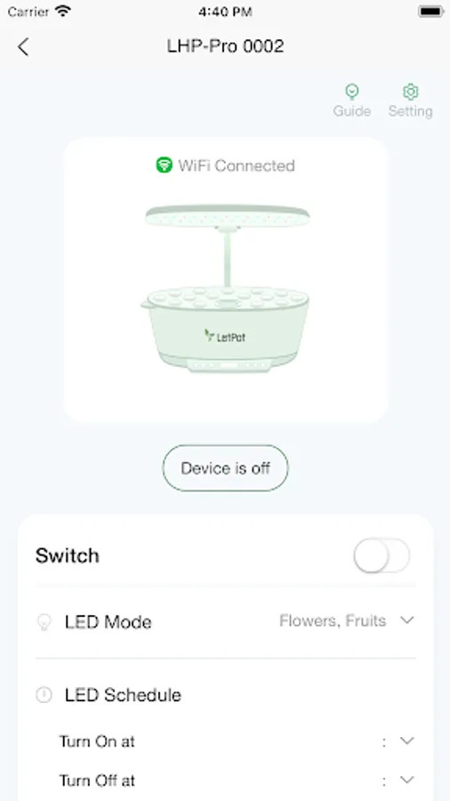 Setup LetPots according to your environmental settings, or monitor the device status in real-time.