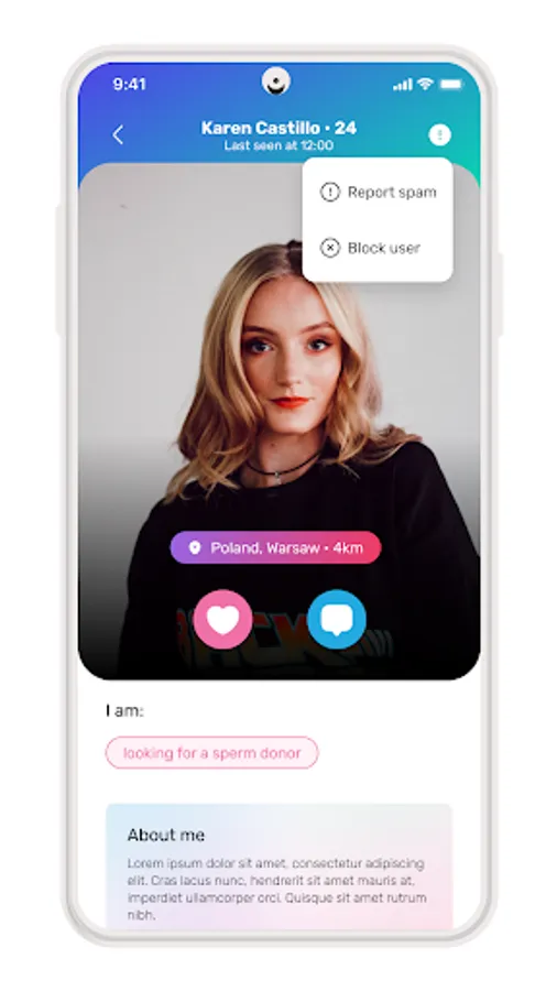 ● Register and create a profile in which the user marks the goal of this search. Thus, the first user dreams of finding a sperm donor, the other one wants to become a surrogate carrier. Maybe one of them wants to be your child-rearing partner.