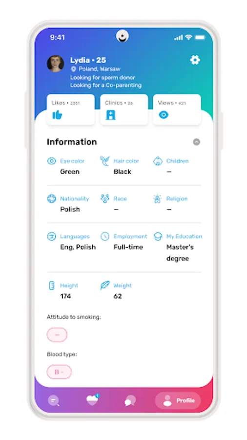 LetsBeParents - the donor search application is a great opportunity for millions of people to become parents in every corner of the world. This service unites like-minded individuals and gives them unique opportunities, thanks to which each private user or organisation could help each other in such a multilateral issue as fatherhood and motherhood.