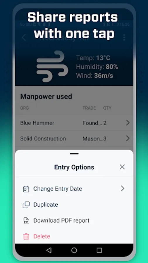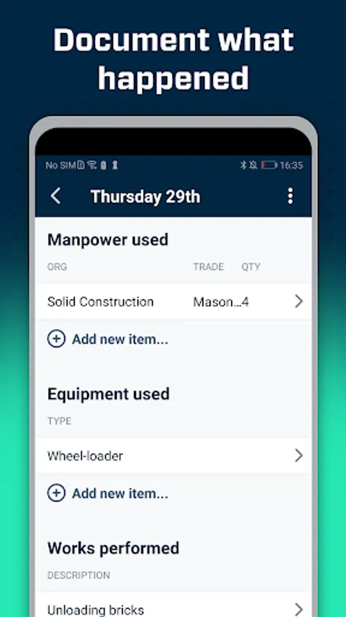 - For enterprise customers, we offer the ability to tailor the Site Diary app to suit your internal processes, such as: