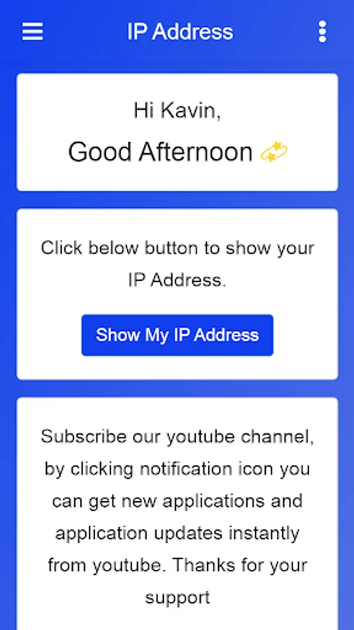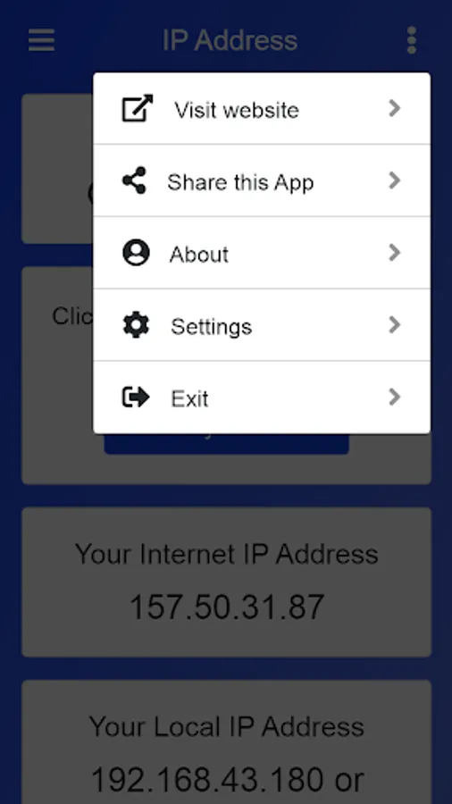 Display local IP Address and Internet IP Address. Which helps to know wich network ip device is connected to internet or intranet.