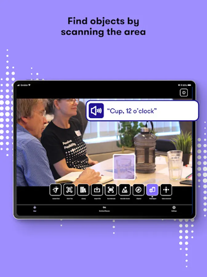 • Find objects around you; selecting common objects from the in-app list to find them.
