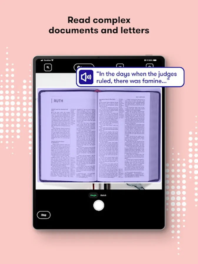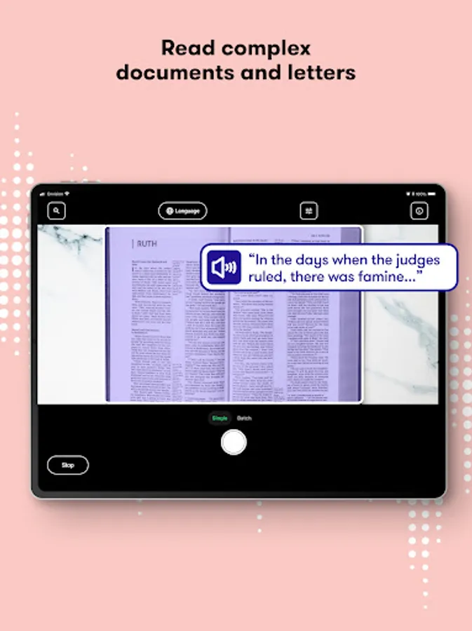 “Incredibly easy to turn any kind of text into speech. It has improved my independence a lot. - Kimberly from USA. Easy going text recognition. Text recognition is outstanding. Good for independence. Ease of use is immaculate” - Noahis from Australia