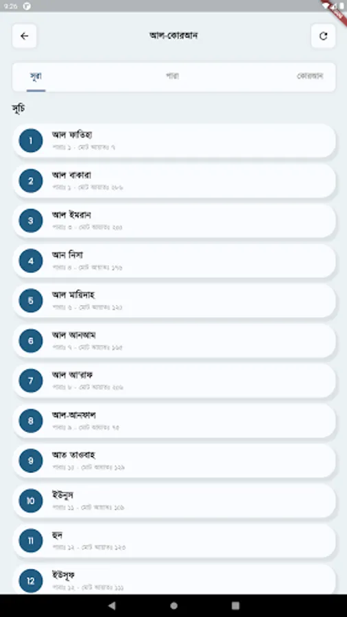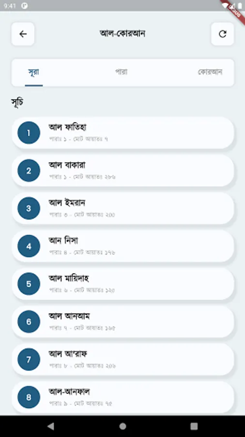 • Read Quran by Juz in Arabic with English and Bangla meaning