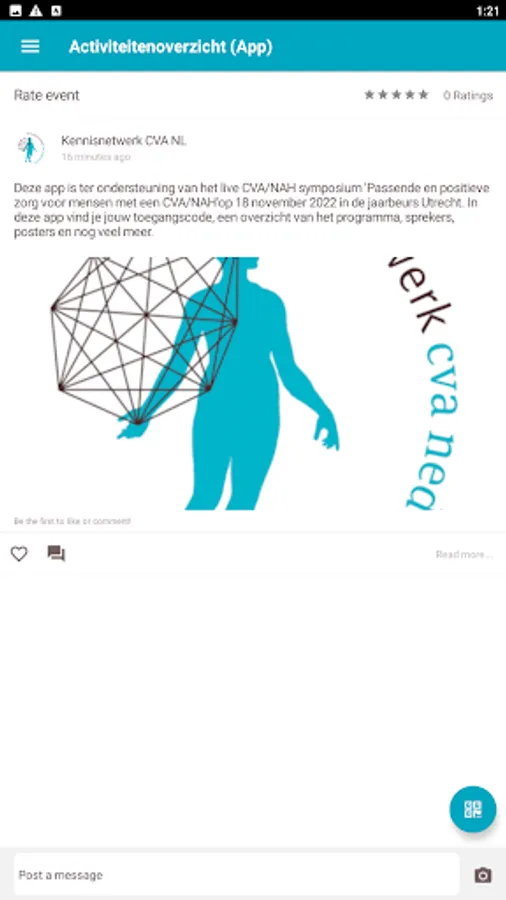 This app is to support the live CVA/NAH symposium 'Appropriate and positive care for people with a CVA/NAH' on November 18, 2022 in Jaarbeurs Utrecht. In this app you will find your access code, an overview of the program, speakers, posters and much more.