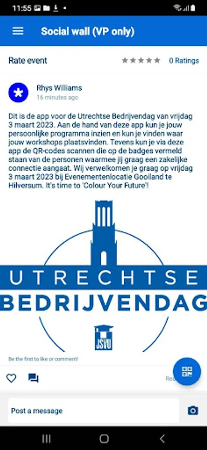 This is the app for the Utrecht Business Day of Friday, March 3, 2023. Using this app you can view your personal program and find where your workshops are taking place. You can also use this app to scan the QR codes that are listed on the badges of the people with whom you would like to establish a business connection. We would like to welcome you on Friday, March 3, 2023 at Evenementenlocatie Gooiland in Hilversum. It's time to 'Colour Your Future'!
