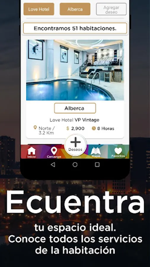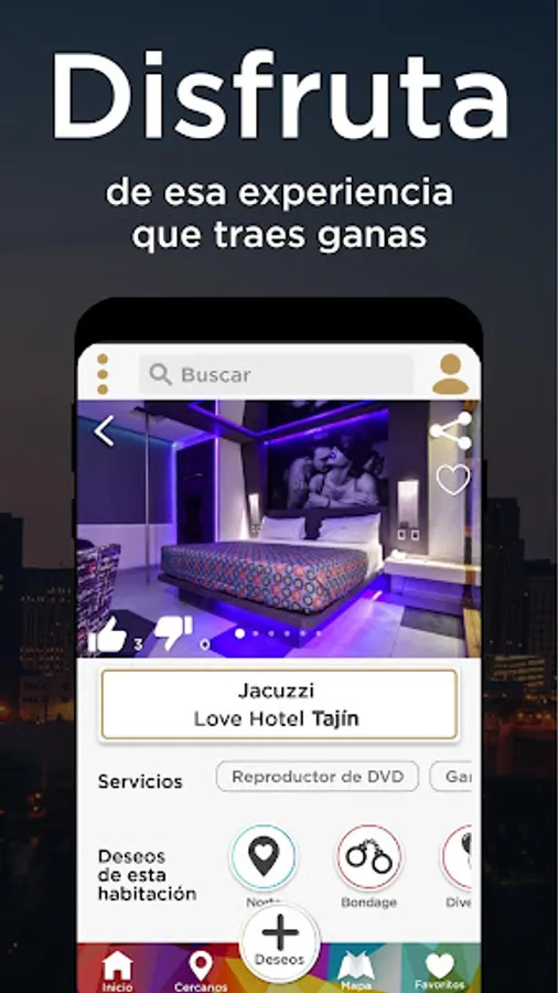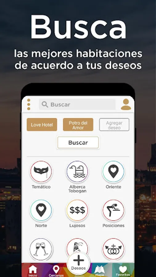 Search, find and enjoy the best rooms of Motels and Love Hotels (Luxurious Motels). Discover in an easy and fun way the ideal spaces according to your preference, which are your 'Desires':