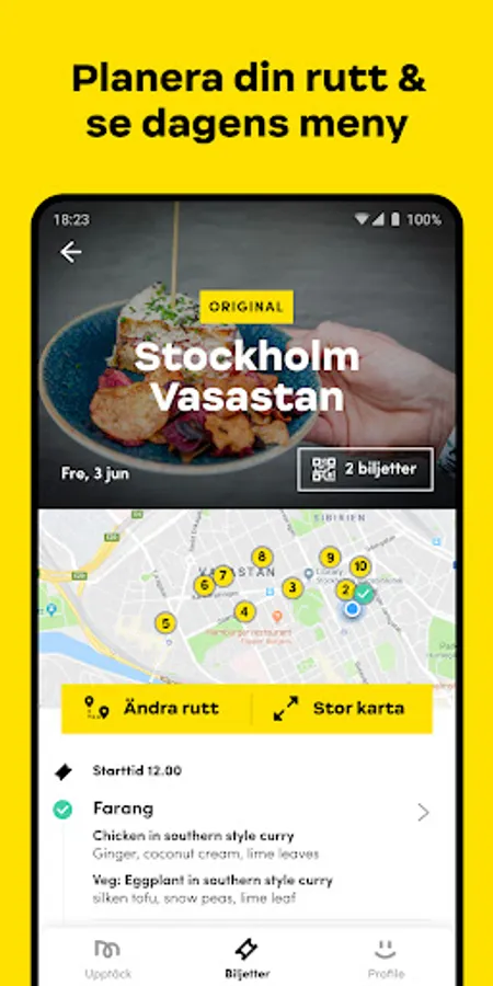 With the app you can see upcoming Moveats and buy your tickets. Find out what and where it is served. Plan your route, navigate around and rate what you have tasted.