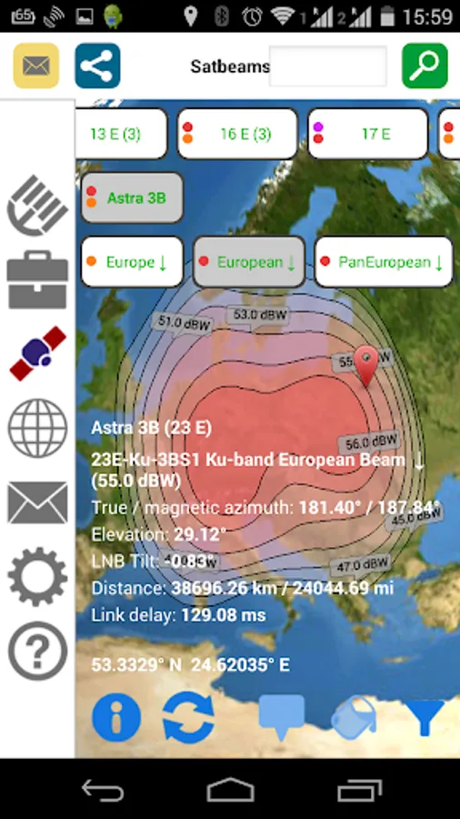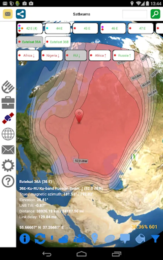 Worlds best satellite footprints browser, dish alignment calculator and AR Sat Finder combined in one tool for your tablet or smartphone!