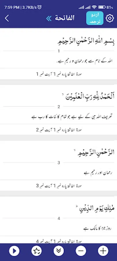 Multilingual Text and Audio: Tafheem Audio provides the Quranic text and audio recitation in three languages, including English, Arabic, and Urdu. Switch between languages effortlessly to read and listen to the Quran in your preferred language, enhancing your comprehension and spiritual experience.