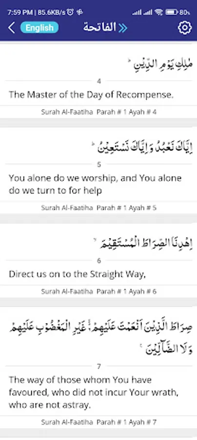 Interactive Translation: Gain a comprehensive understanding of the Quran by accessing interactive translations of each verse. The app provides translations in multiple languages, enabling you to grasp the true essence of the Quran in your native language.