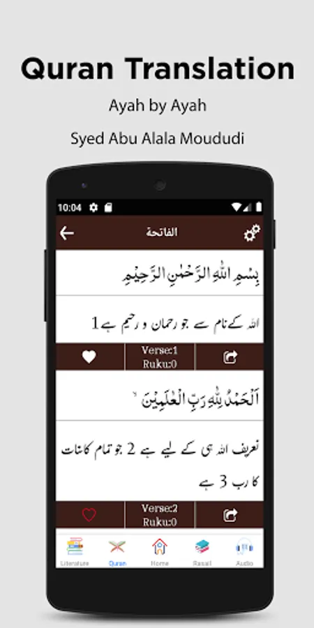 Some features include, Share and Bookmark ayah, Search with Surah name, Bookname, unicode books and Tarjuman article titles.