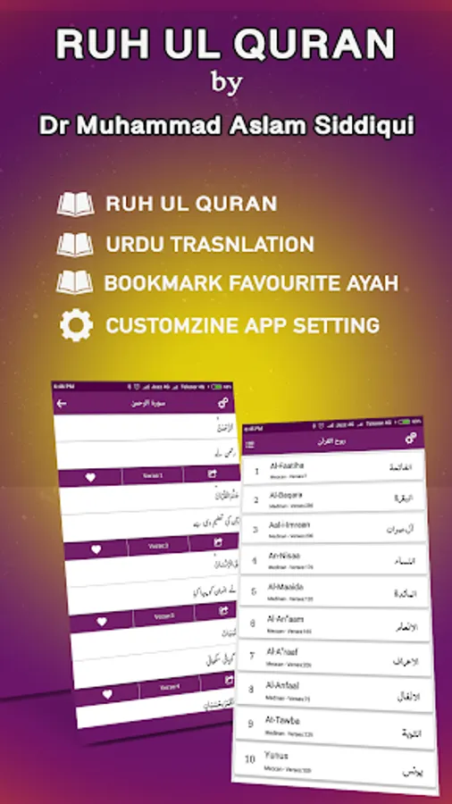 By using this app user can easily understand quran, Read Quran, book mark ayah, can easily switch to Dark Mode, Night Mode and default mode. User can easily select different themes, fonts families and fonts sizes for Quran words and its translation. There are 3 different modes available in our app simple mode (Mushaf Mode Only Arabic), Arabic and translation mode (Which also include word by word translation), and Tafseer mode.