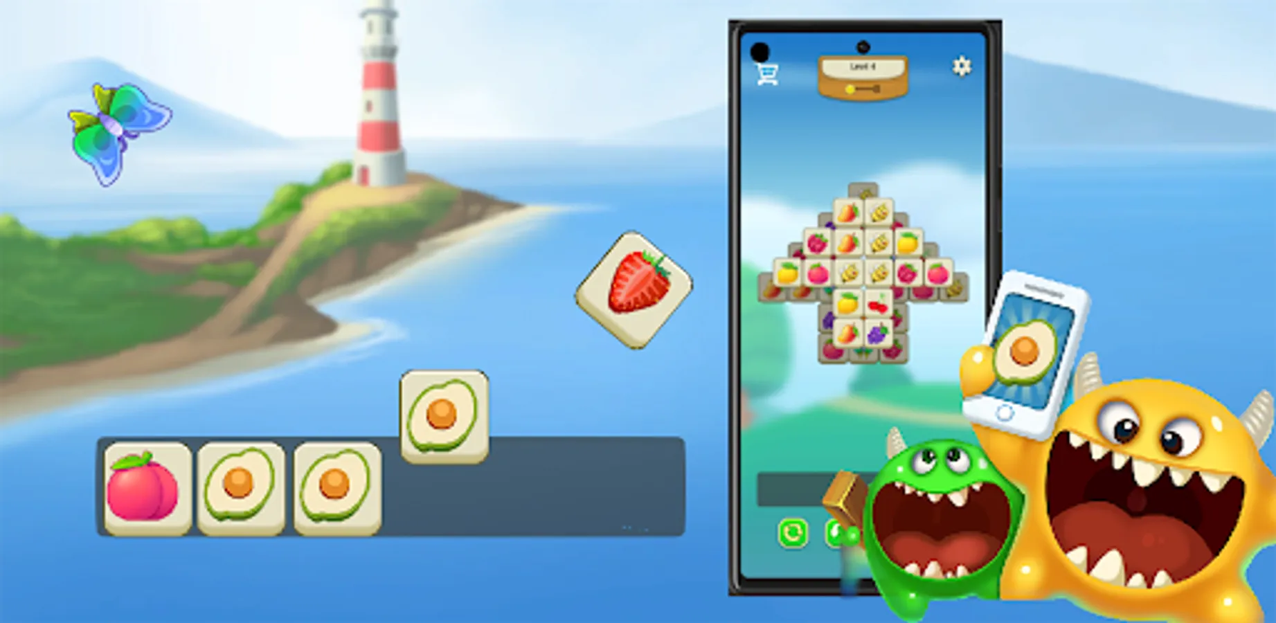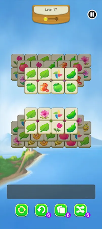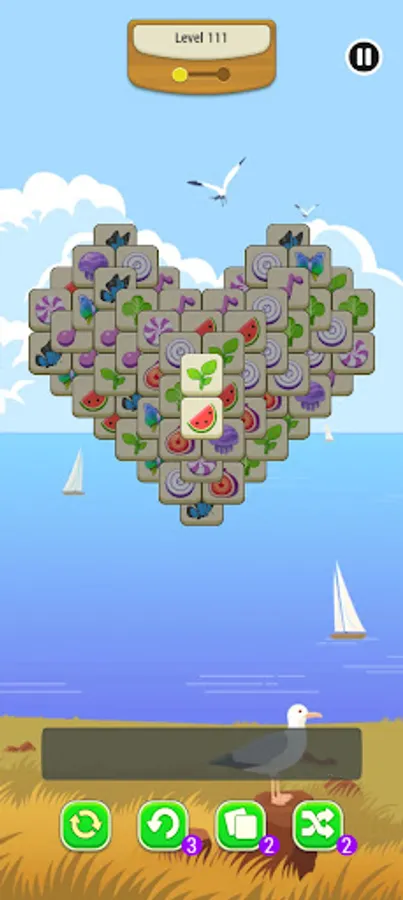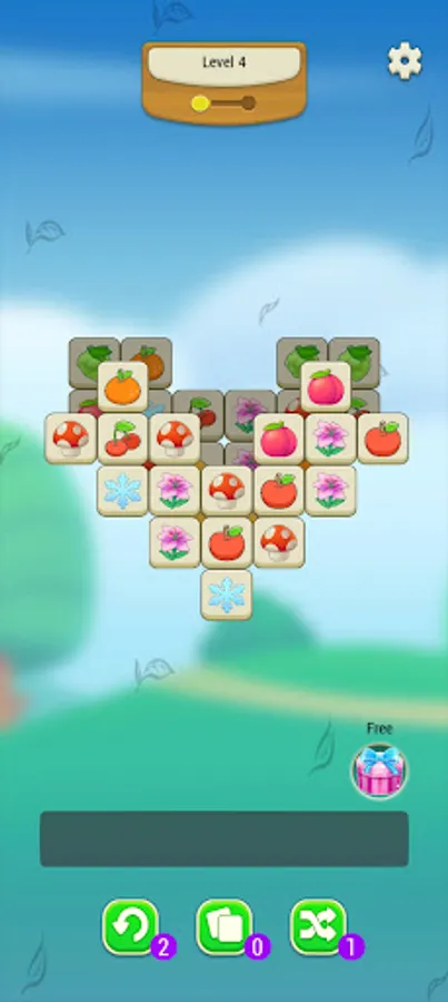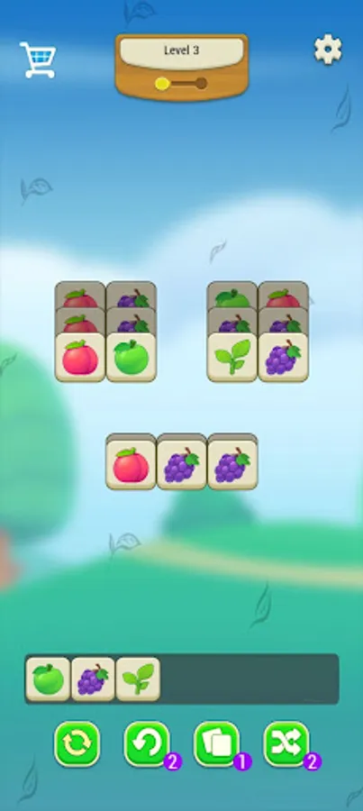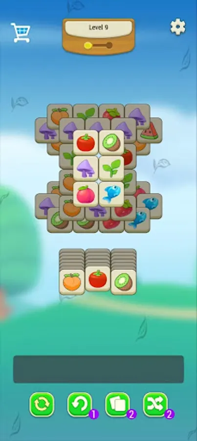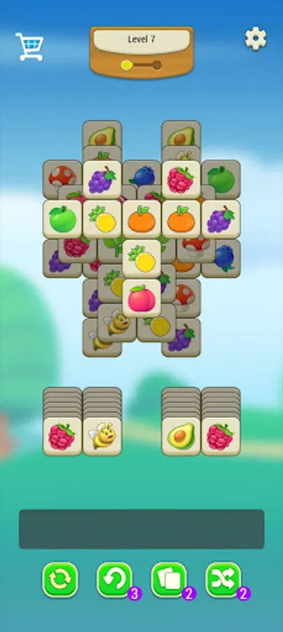 This is a tile matching puzzle game, at the bottom of the screen, there is a board to hold your selected tiles,e, including various fruits, egg, flower and vegetable patterns. There is enough room for 7 tiles at a time.