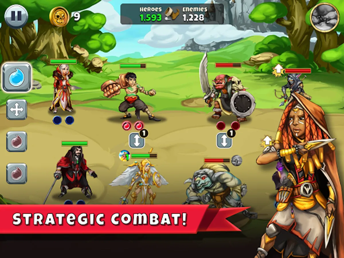 Loads of depth and a unique, dice-based RPG combat system provide the perfect blend of luck and skill, ensuring that no two battles are ever the same. Position your heroes carefully, anticipate your opponents' moves, and capitalize on those lucky rolls!